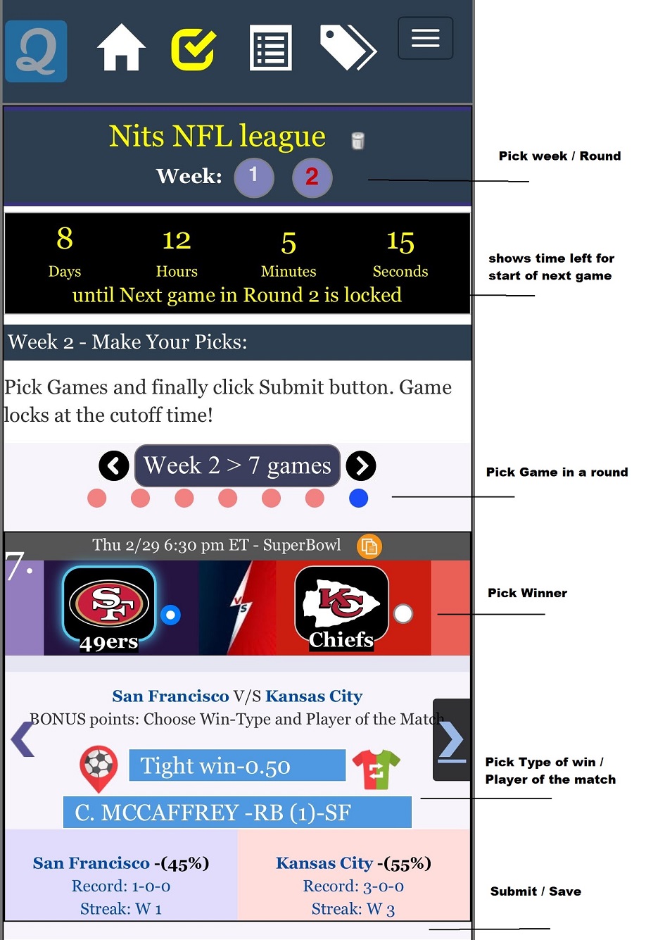 The concept is simple: For our tournaments, PLAY our hosted league or create/join league with friends. In your league (group), predict the winners of each game for each week/round.
